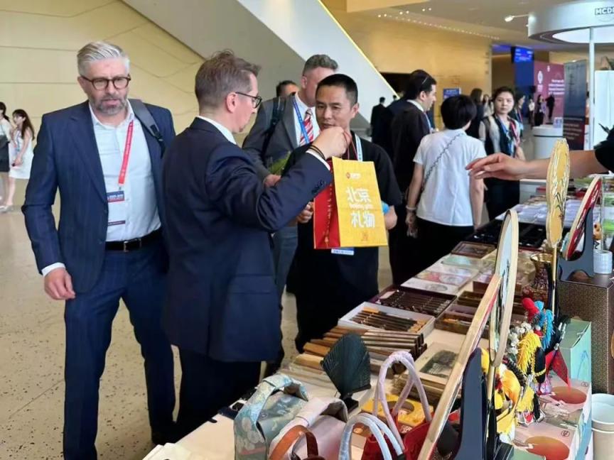此次参展的非遗和中华老字号包括传统工艺类(工美、珐琅厂、菜百)、文房四宝类(荣宝斋、一得阁、戴月轩)、服饰类(瑞蚨祥、盛锡福)、健康类(同仁堂、吴裕泰)。同时,特别设置“北京礼物”专区,组织秀水街、北京华江文化集团两家“北京礼物”试点运营商,将“北京礼物”专属好物、精品爆款带到现场,深受外宾喜爱,充分展现北京特色和文化魅力。
