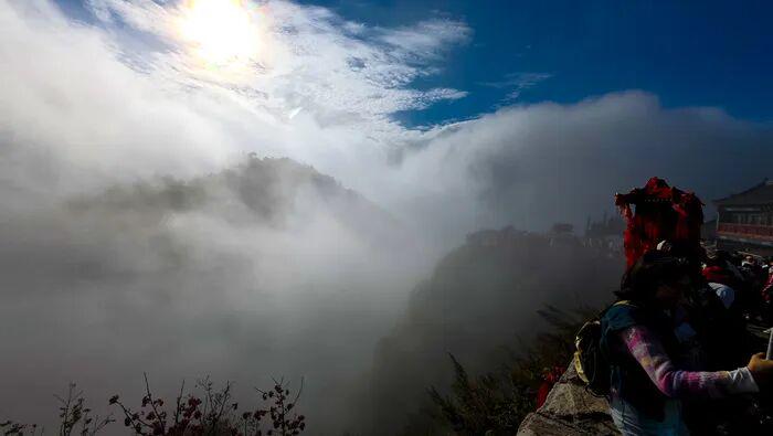 △连日来,泰山风景区迎来多场秋雨,降雨间隙时山间云雾缭绕。