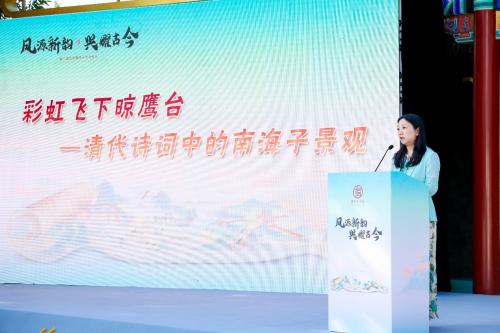 中国人民大学国学院辛晓娟教授作题为《彩虹飞下晾鹰台——清代诗词中的南海子景观》的主旨演讲。她以清代诗人吟咏南海子的诗篇为切入点,通过解读诗中描绘的南海子地貌景观和乾隆狩猎盛景,梳理出南海子作为皇家猎苑的历史脉络,进一步凸显出其独特的苑囿文化,并提炼出“取之有度,用之有节”的发展智慧。辛晓娟认为,南海子这片曾经“燕京十景”之一的皇家苑囿,正以文化记忆的方式重构着现代北京的城市形象。