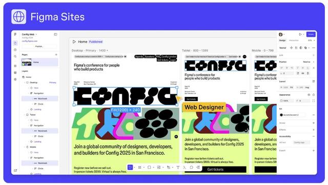 Figma Sites可让用户设计网站并直接将其发布到网上。