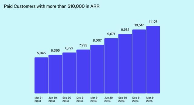 截至2025年3月31日,在Figma平台上年度付费超1万美元的付费客户达到11107家。