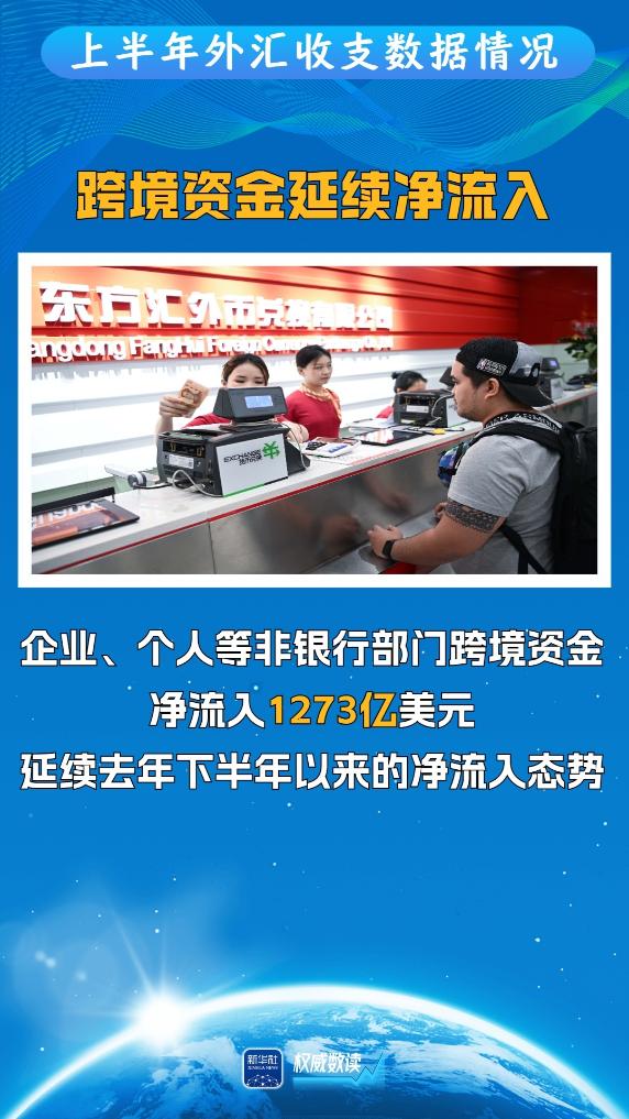 最新出炉的外汇数据表明,上半年我国跨境资金净流入1273亿美元,其中,二季度净流入环比增长46%,延续了去年下半年以来的净流入态势,我国跨境贸易和投融资活动继续保持活跃。跟随这组海报,一起来看看吧。