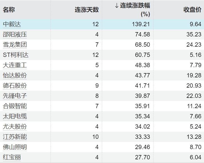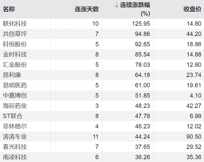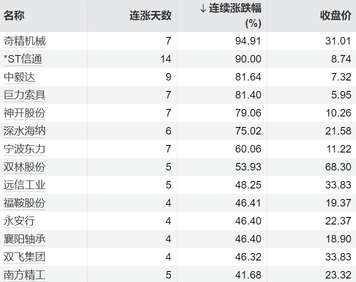 116只个股连续上涨5个交易日及以上116只个股连续上涨5个交易日及以上